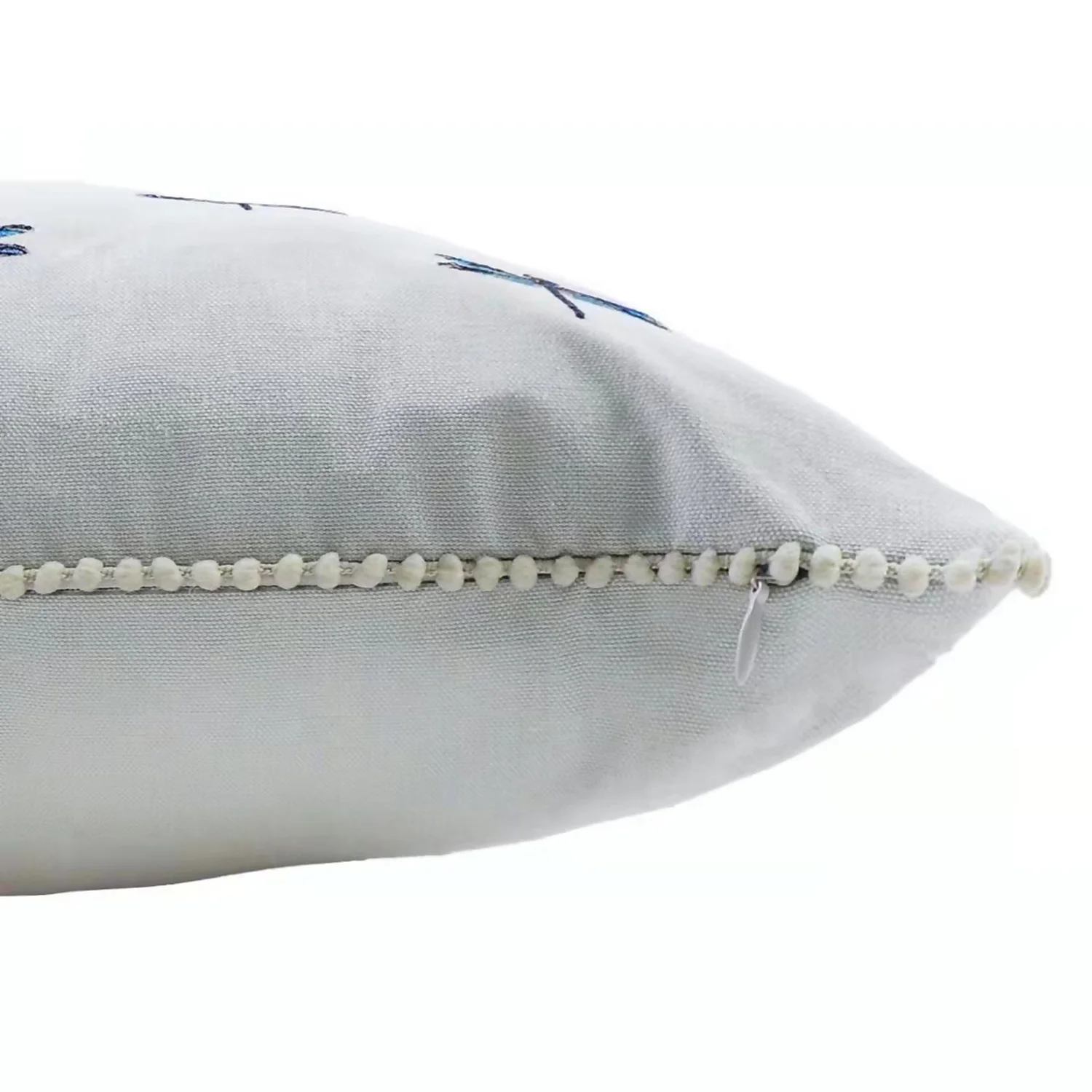 Featuring an all over embroidered Dragonfly motif, this fun cushion will stand out on your sofa. Embroidered on poly canvas and finished in Sage multi. This cushion has a co-ordinating plain reverse and is edged with a mini bobble trim in sage