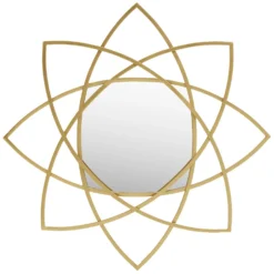 This wall mirror will make a statement with the pentagonal, geometric detail frame. The sophisticated eight sided frame in the warm metallic finish will add a touch of glamour to home decor.