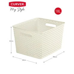 Curver My Style Large Rectangular Plastic Storage Basket – Vintage White – 18L