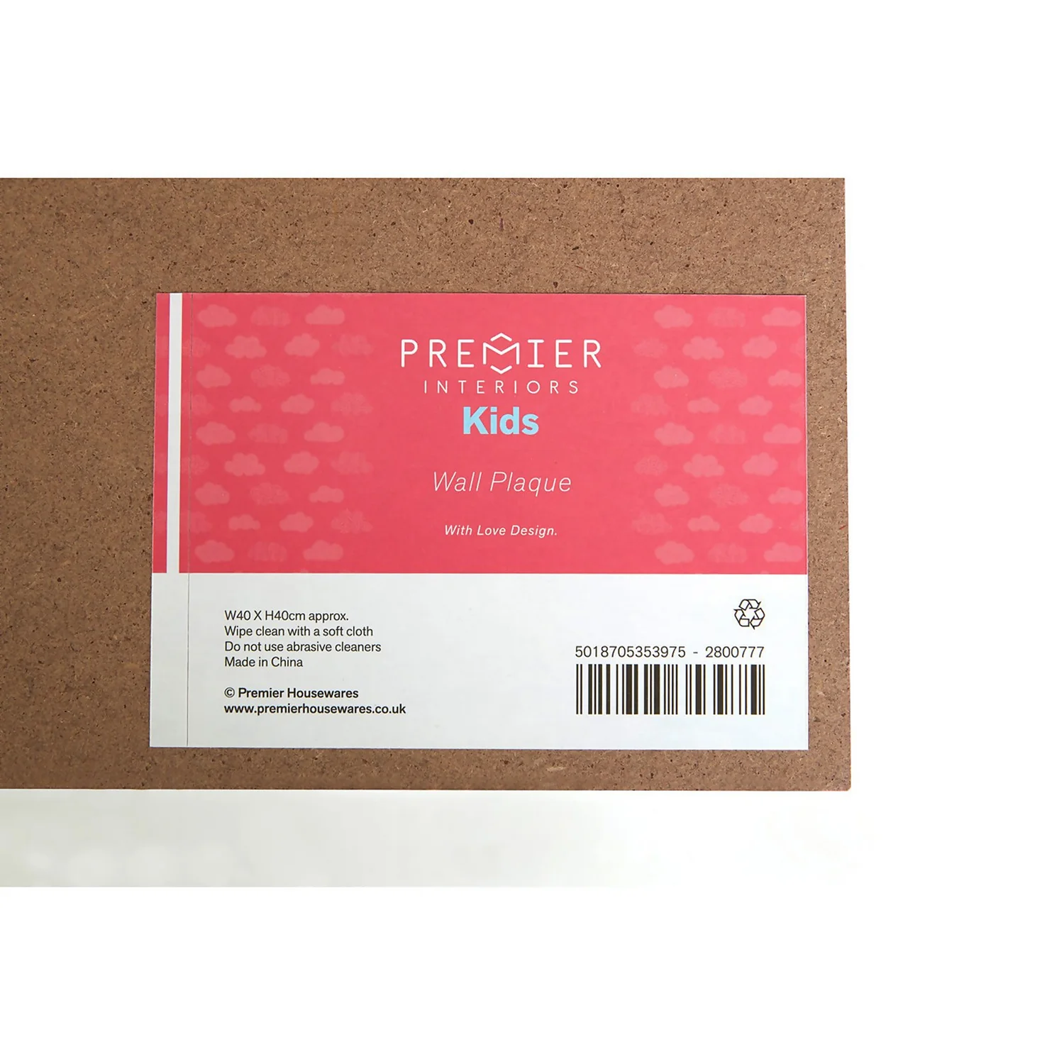 Polka dots, stripes, love hearts, and chevron designs come together in this bright and cheerful wall plaque. Each square features its own letter, combining to spell the word ‘love’. Its pink, teal and grey colour scheme styles well in rooms with pastel tones. Secure metal clips on its back keeps it safe and secure on the wall.