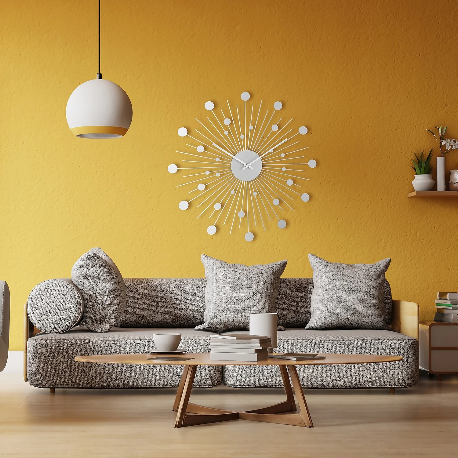 An eye-catching feature wall clock in a matt silver finish, a perfect statement piece for any wall.