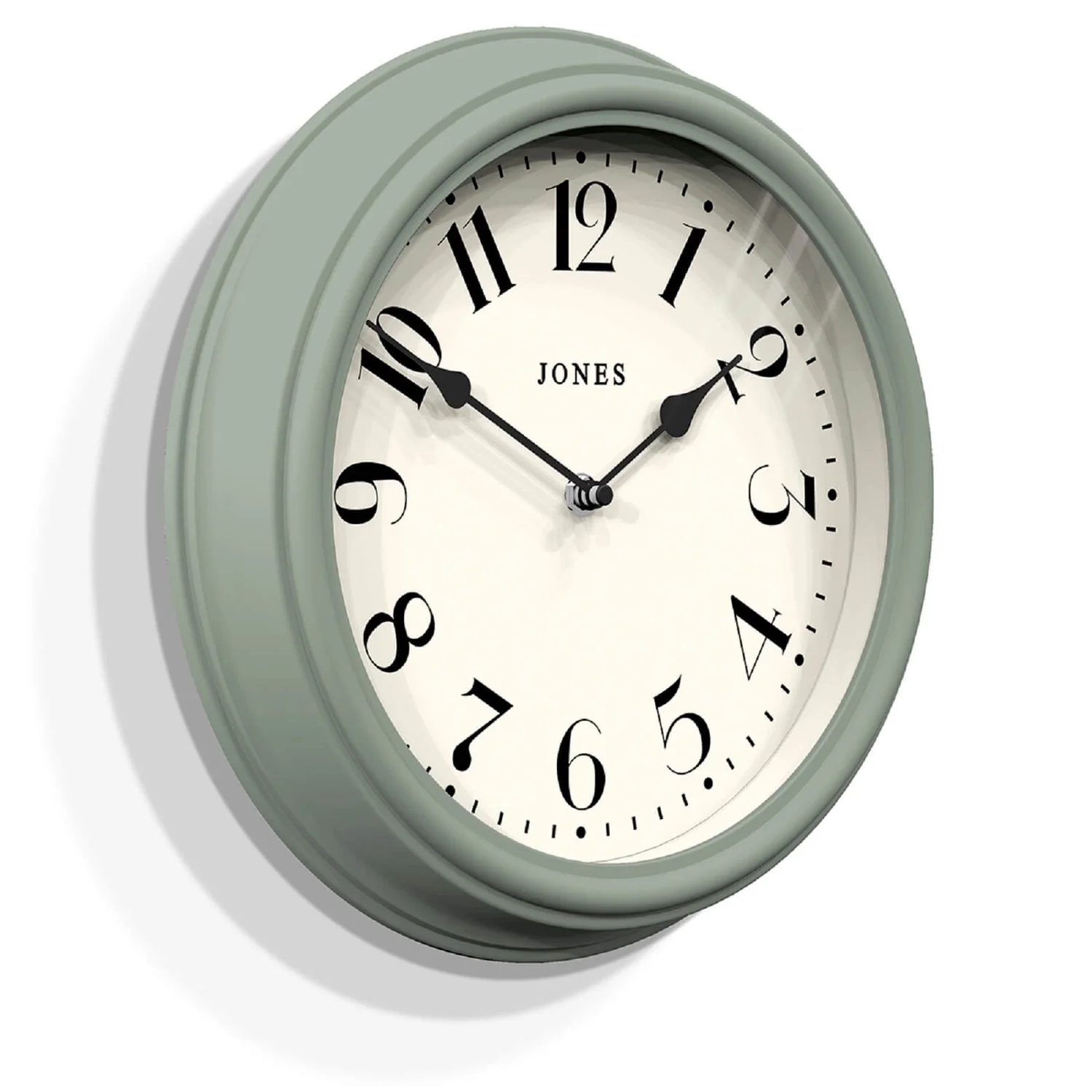 A decorative wall clock with a classically-moulded case given a matt finish. Elegant numeral dial and traditional metal spade hands mark time behind a flat glass lens.