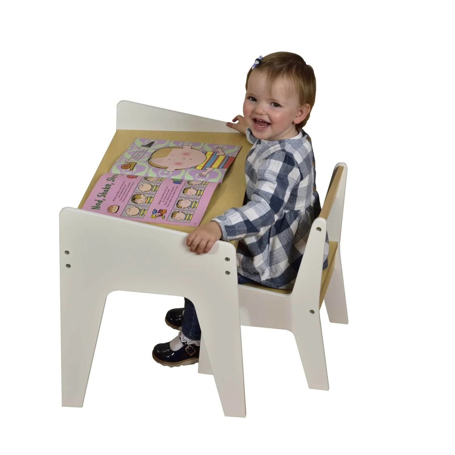 This attractive looking table and chair set will look great in any bedroom or playroom. The table is cleverly designed with raised sides ? preventing items from sliding off either end of the table.